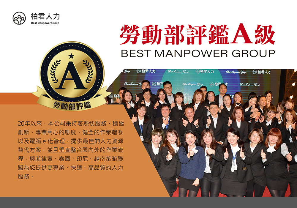 評 鑑 A 級 , 最 優 質 的 人 力 資 源 !