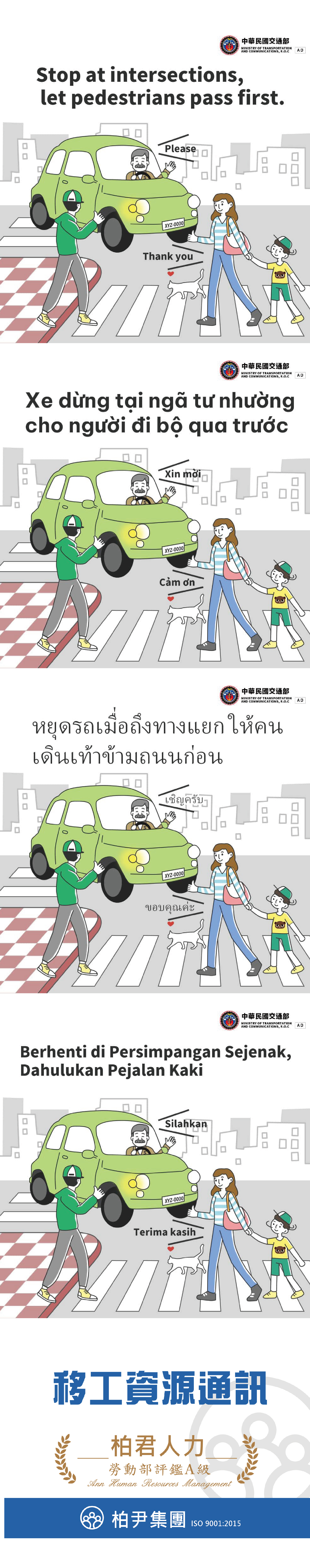 路口車停下 讓行人先過-多國語